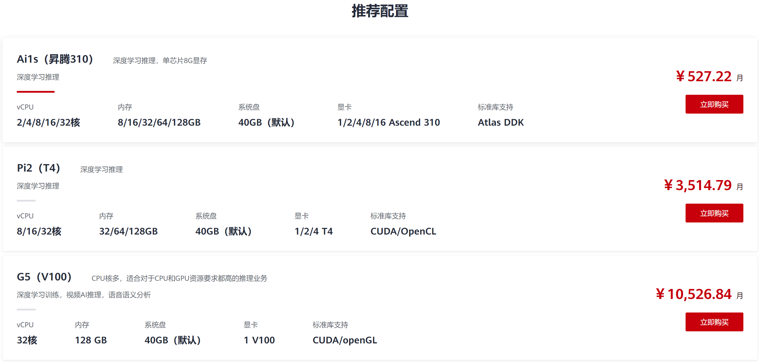AI推理加速型系列:搭载华为昇腾310芯片,为AI推理业务加速。