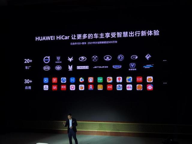 在发布车载智慧屏前,余承东透露,华为HiCar目前已合作20+车厂、150+款车,提供30+应用,通过分布式UX技术实现车机屏幕自适应,2021年将会在500万台新车上预装。
