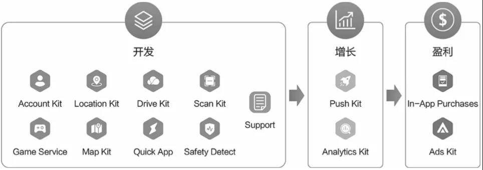 HMS Core从开发、增长和盈利三个环节为开发者提供支持。