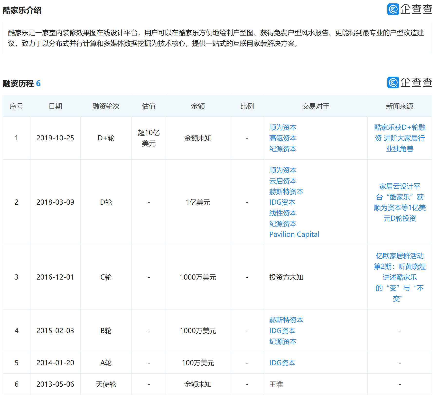 酷家乐经过多轮融资已经位列“独角兽”,2019年更是获得顺为资本领头的超10亿美金融资!