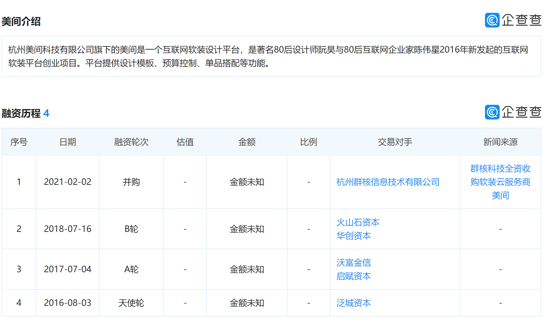 此前,美间获得了华创资本、火山石资本、启赋资本、泛城资产等机构的融资。